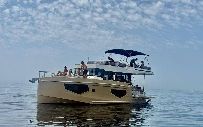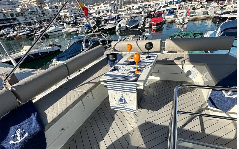 Enjoy exclusive captain and crew. We provide towels, ice, water, sodas, beer, and cava. Additionally, our yachts feature high-quality Bluetooth sound systems for your music. Our yachts are equipped with cabins, kitchen, air conditioning, and bathrooms on board. Since each boat is unique, we recommend you contact us with any specific questions you may have. We guarantee a personalized and exceptional marine experience!